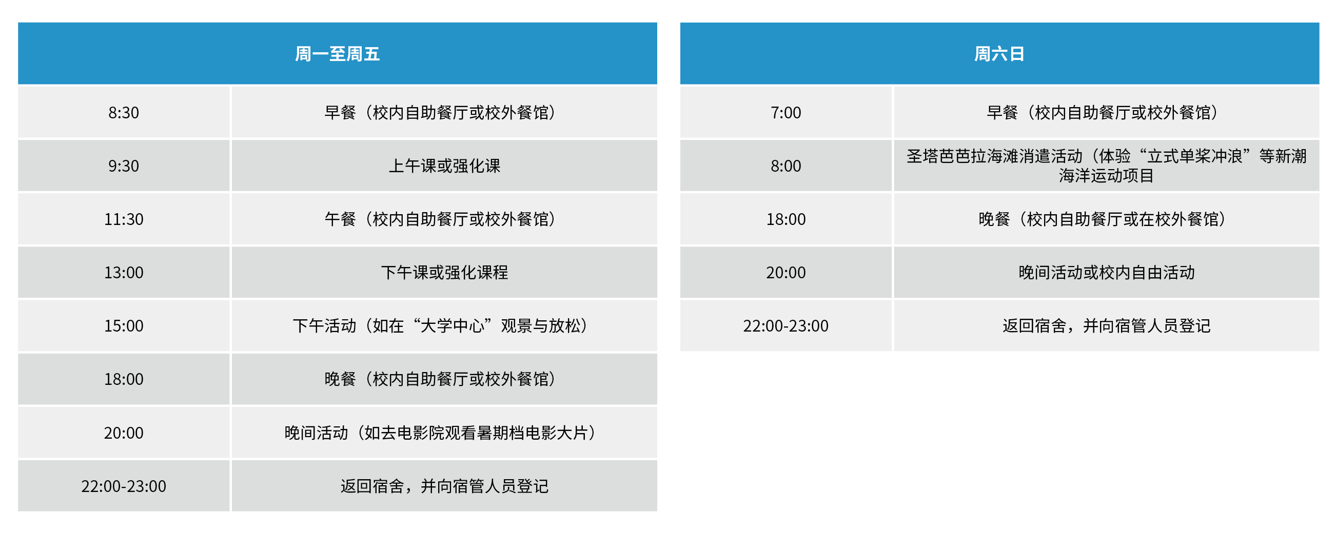 Summer Discovery的宿管人员致力于为学生提供监管与支持服务。为保障学生安全,宿舍每天都需登记入内和例行检查。学生可自由结伴,在校园、景岛(Isla Vista)及圣塔芭芭拉市中心附近四处参观。如有任何问题,可随时寻求宿管人员帮助。